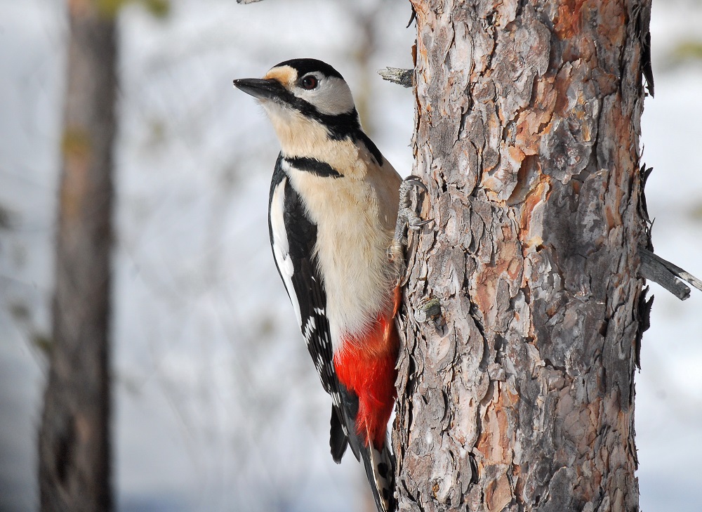 Les pics sont des oiseaux arboricoles et tambourineurs ce qui leur a valu quelques particularités anatomiques : bec robuste, crâne renforcé, pattes musclées, queue aux plumes rigides ou encore longue langue effilée munie d'une salive collante et de crochets. Parmi eux, l'épeiche est le seul à s'aménager des tables pour décortiquer en nombre les cônes de résineux. De ceux-ci, coincées dans les « forges » comme on les appelle, il retire plusieurs milliers de graines de conifères en une seule journée d'hiver. Comme ses cousins, les loges qu'il façonne pour se reproduire témoignent de sa présence et sont bénéfiques à d'autres espèces.