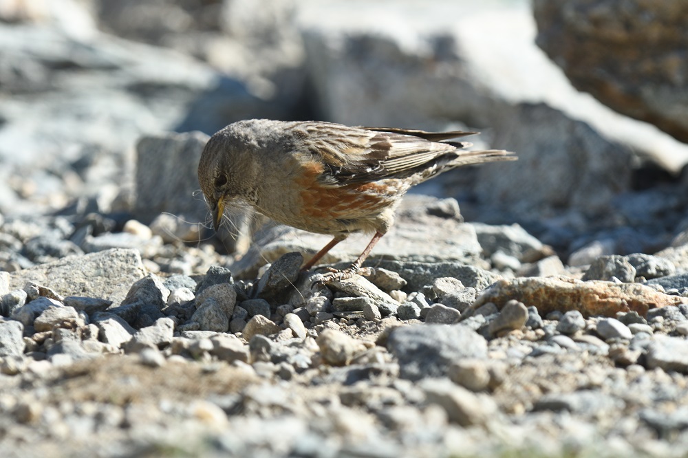 Typique de la haute montagne, l'accenteur alpin est un passereau robuste de la famille des prunellidés. Son plumage, gris sur le dessus, est rayé de noir. Ses flancs roux sont caractéristiques.